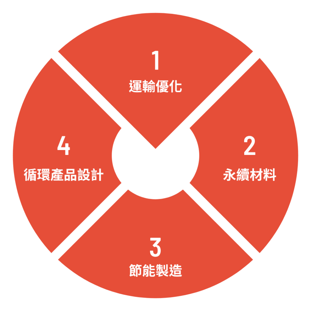 致力於降低產品在生產全周期中的碳足跡,從材料選擇、製程優化到運輸包裝,全面落實碳排控管。